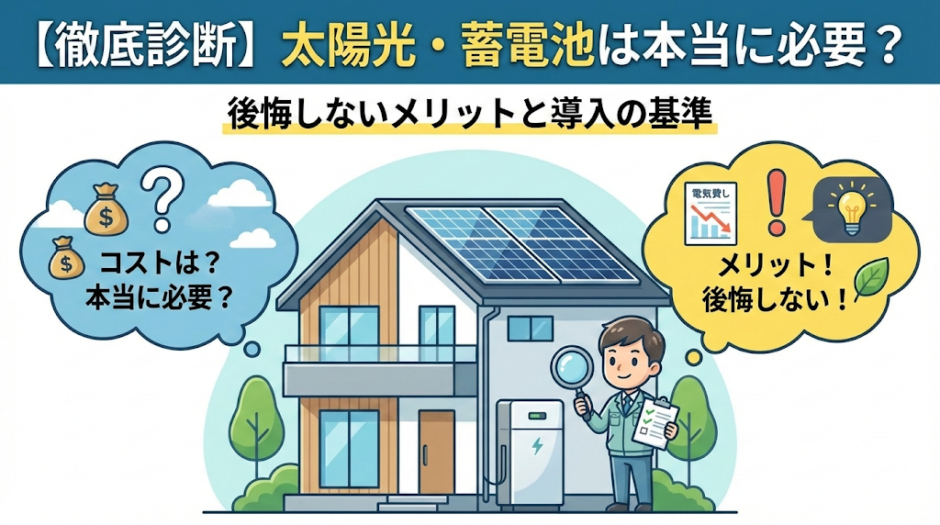 本記事では、『住まいドクター』が、太陽光・蓄電池が今のあなたに必要なのかを、忖度なしのプロの視点で診断します。この記事を読み終える頃には、あなたの家にとっての「正解」がはっきりと見えているはずです。